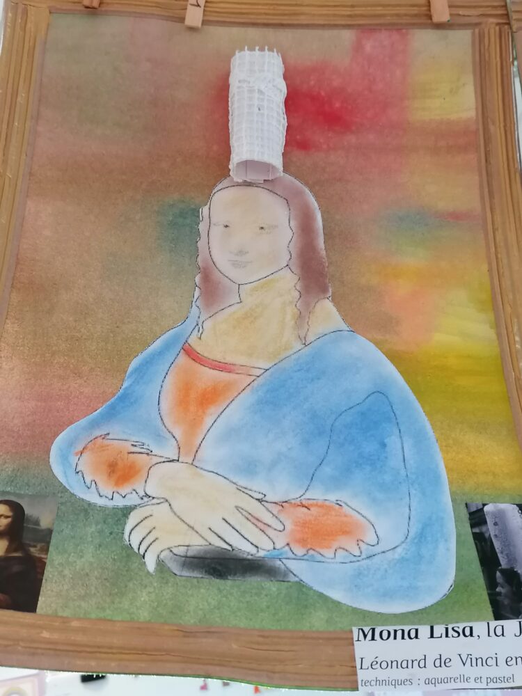 Notre classe commence à être décorée sur le thème de la Bretagne. Nous avons réalisé la côte de Granit Rose en papier déchiré, relooké la Joconde en Bigouden, dessiné le château d’Anne de Bretagne (en MS et CP), réalisé des quadrillages sur une des tours de ce château en TPS, PS. Nous avons également utilisé la technique du pochoir pour peindre des symboles bretons (triskell, hermine).