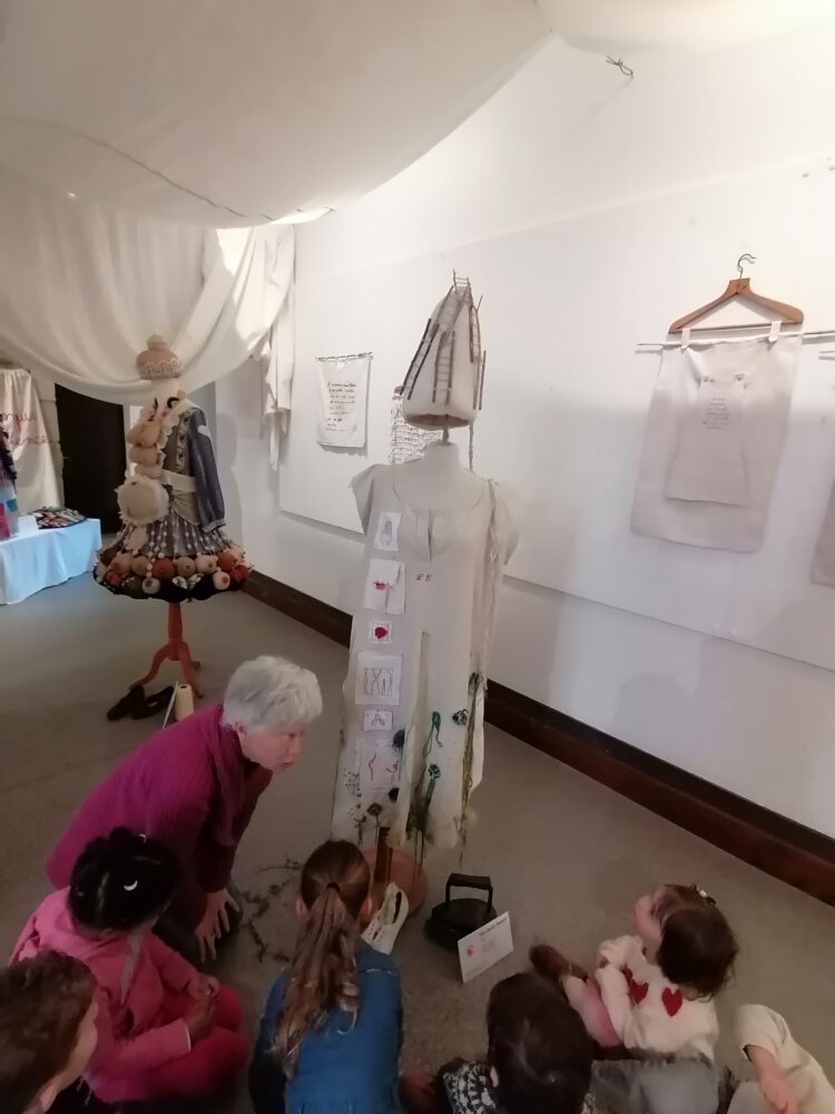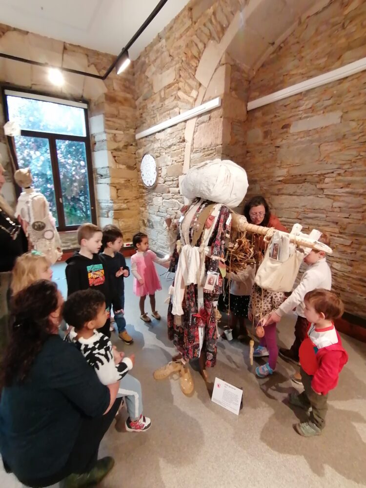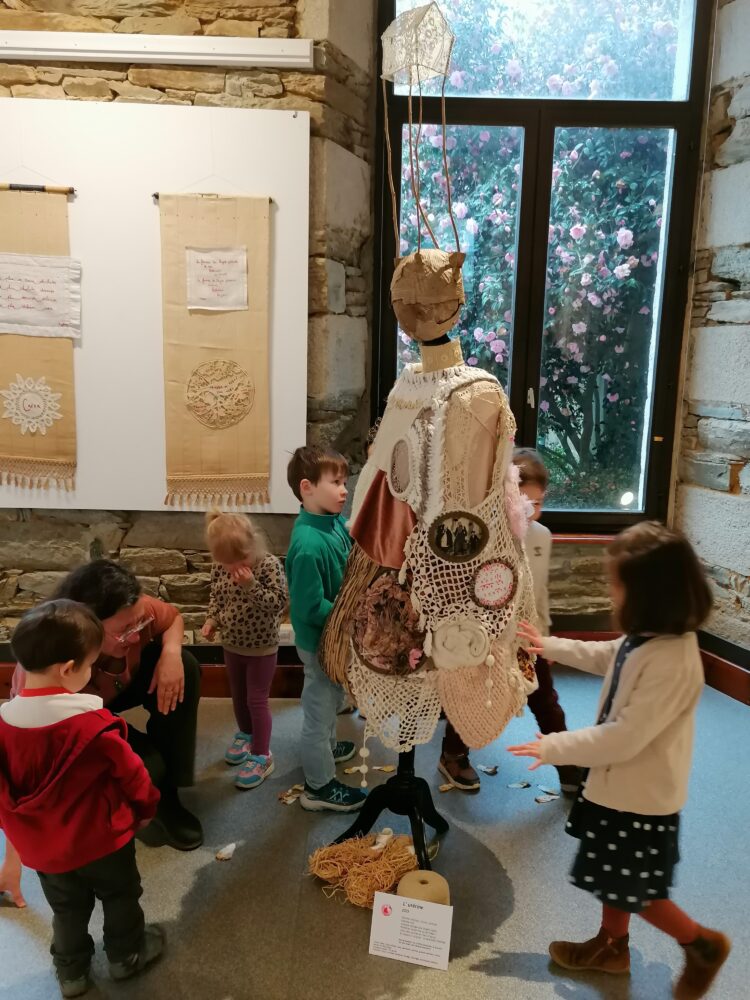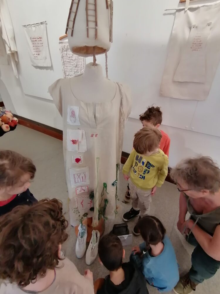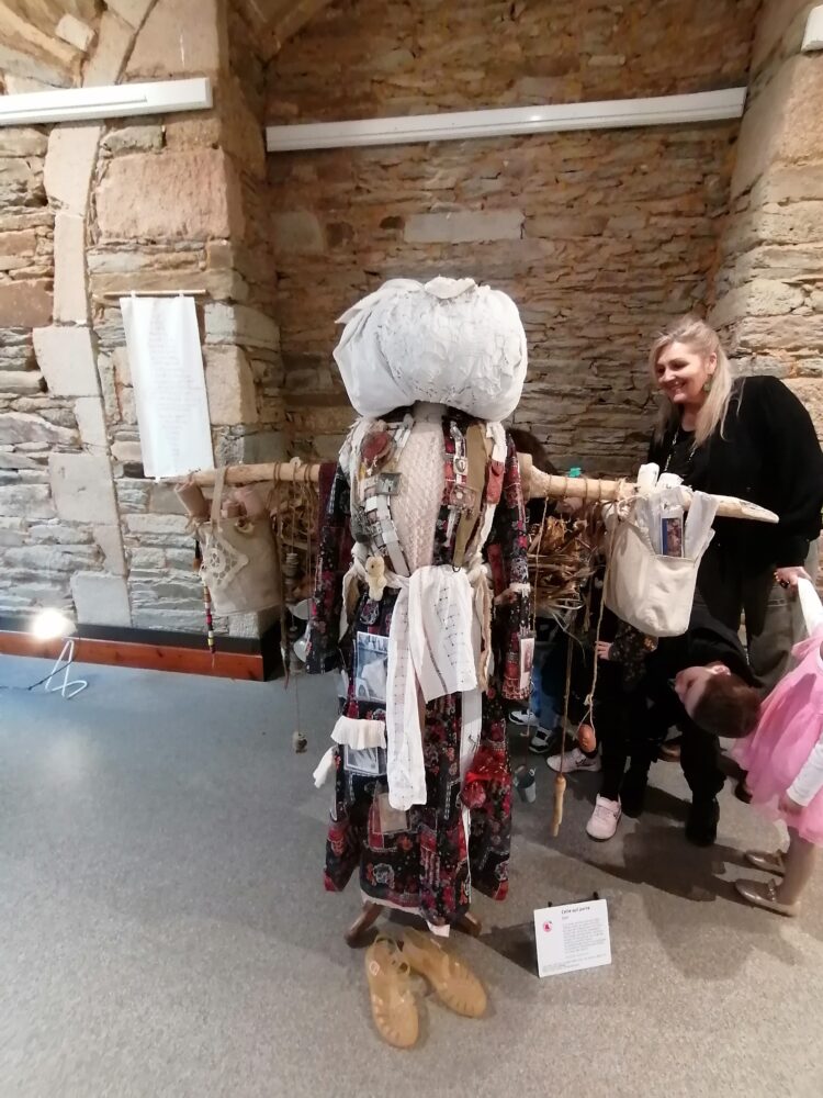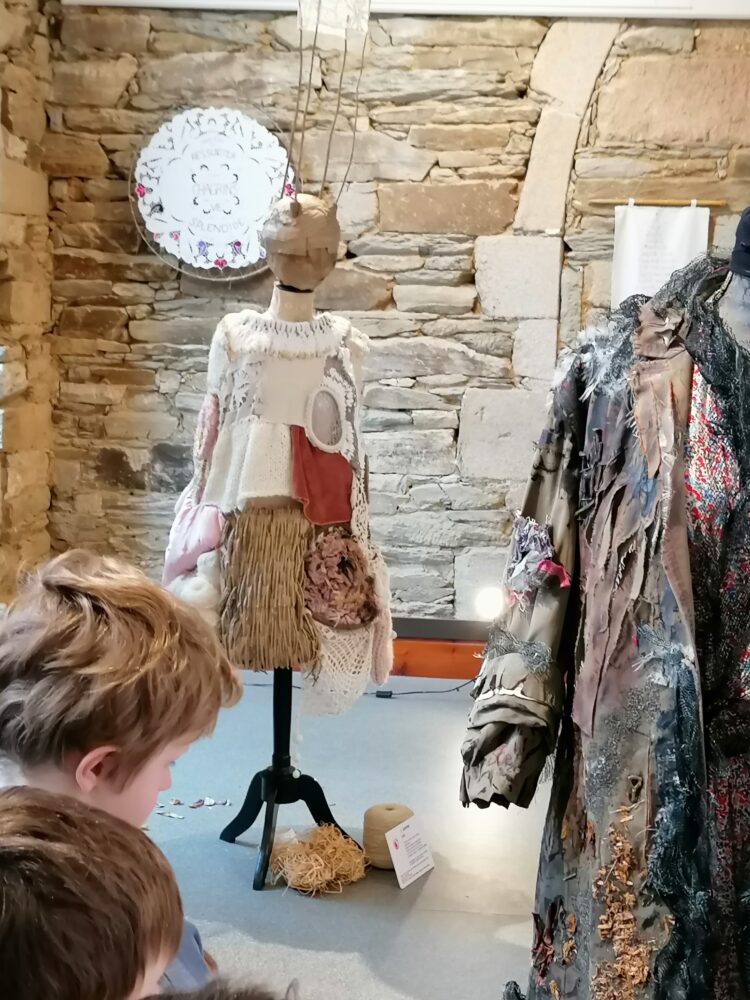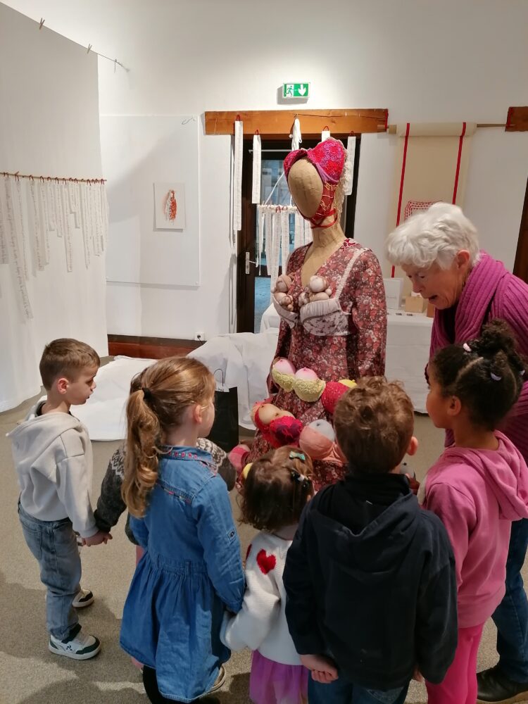 Nous sommes allés à l’atelier des Ursulines afin de visiter l’exposition “Tenues Dérobées”. Nous avons accueillis par Anne-Soaz, Anne-Marie et Muriel. Elles nous ont présenté le travail réalisé par leur collectif. Il s’agit de tenues communicant différents messages, réalisées par 11 femmes.