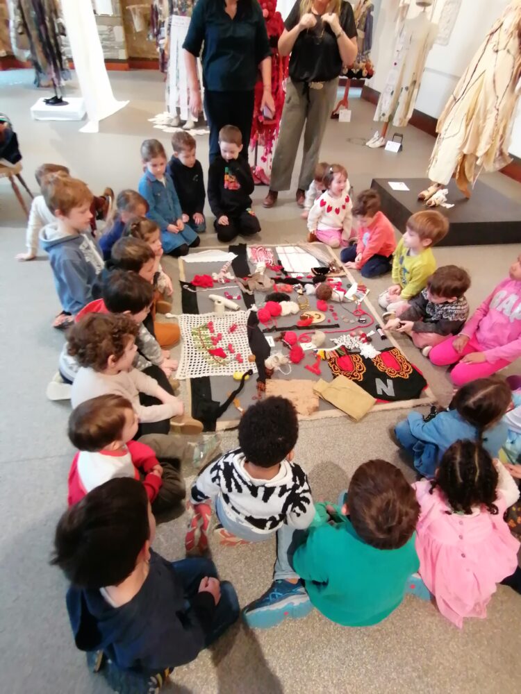 Nous avons pu observer quelques matériaux et techniques utilisées. Après avoir fait la visite en petits groupes, nous avons fait une petite chasse aux matériaux et aux émotions.