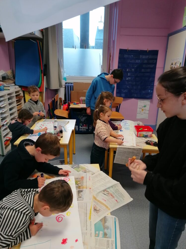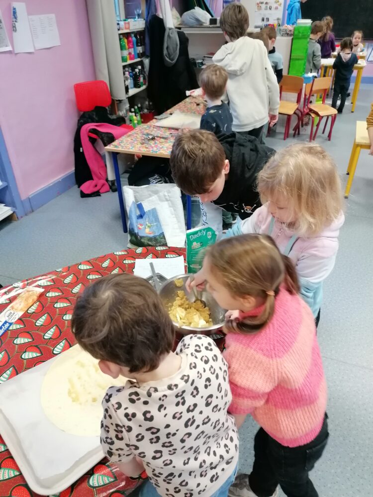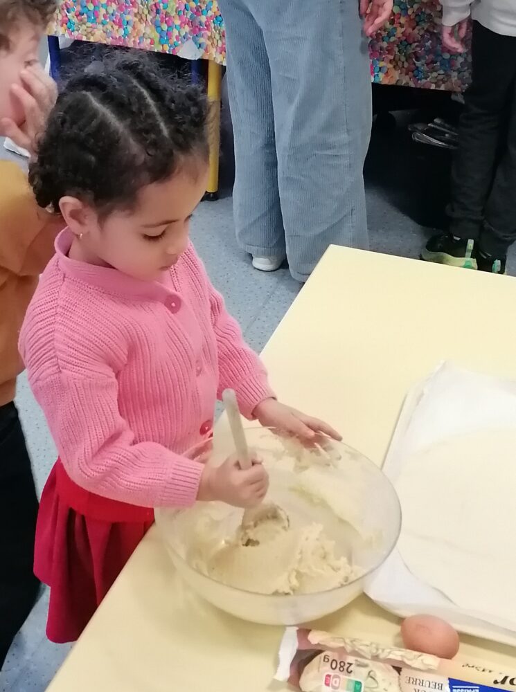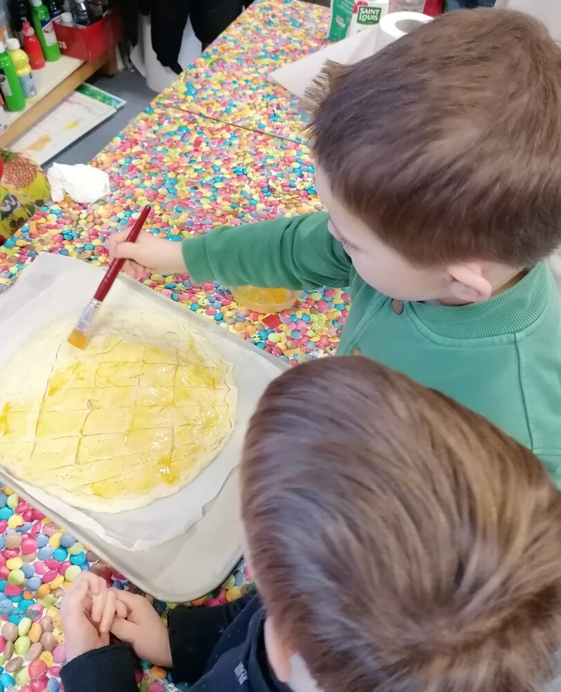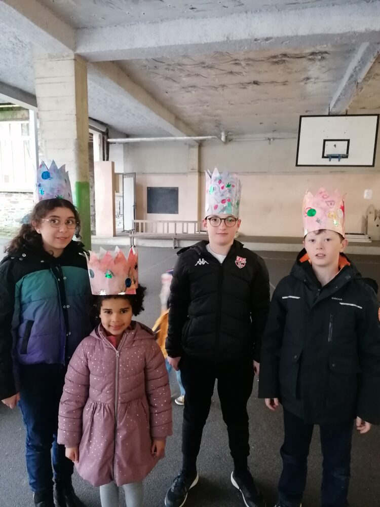 Lundi matin, quelques élèves de la classe de CM2 bilingue sont venus nous aider à préparer les galettes des rois. D’autres ont aidé à la confection des couronnes et les ont ensuite déposées au restaurant d’application pour les faire cuire. L’après-midi, nous les avons dégustées ensemble. Il y avait 2 rois et 2 reines. Ces différents moments ont été bien appréciés des élèves.