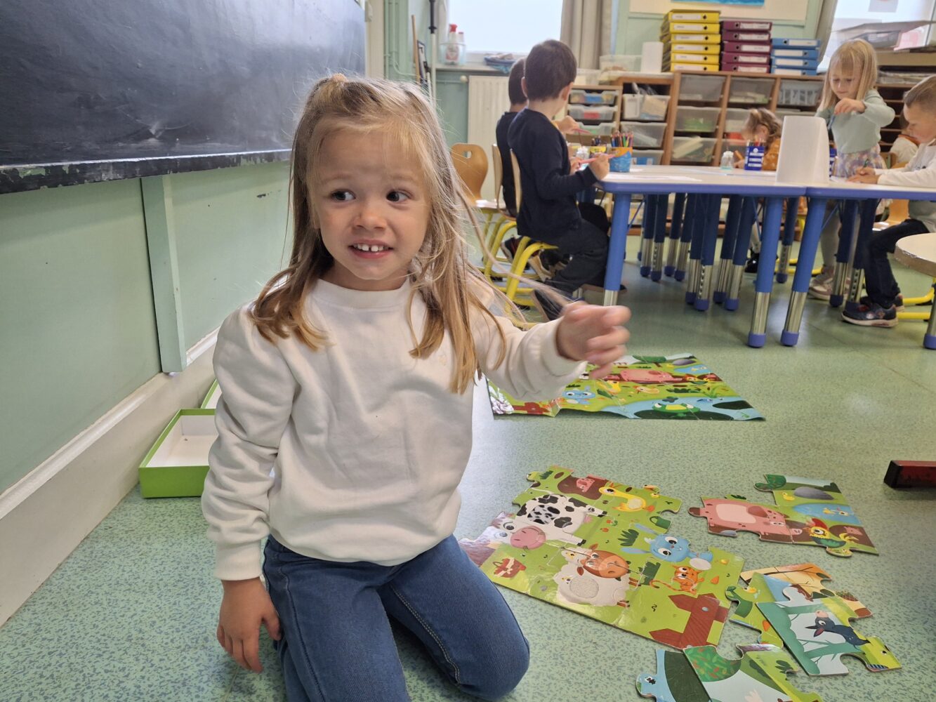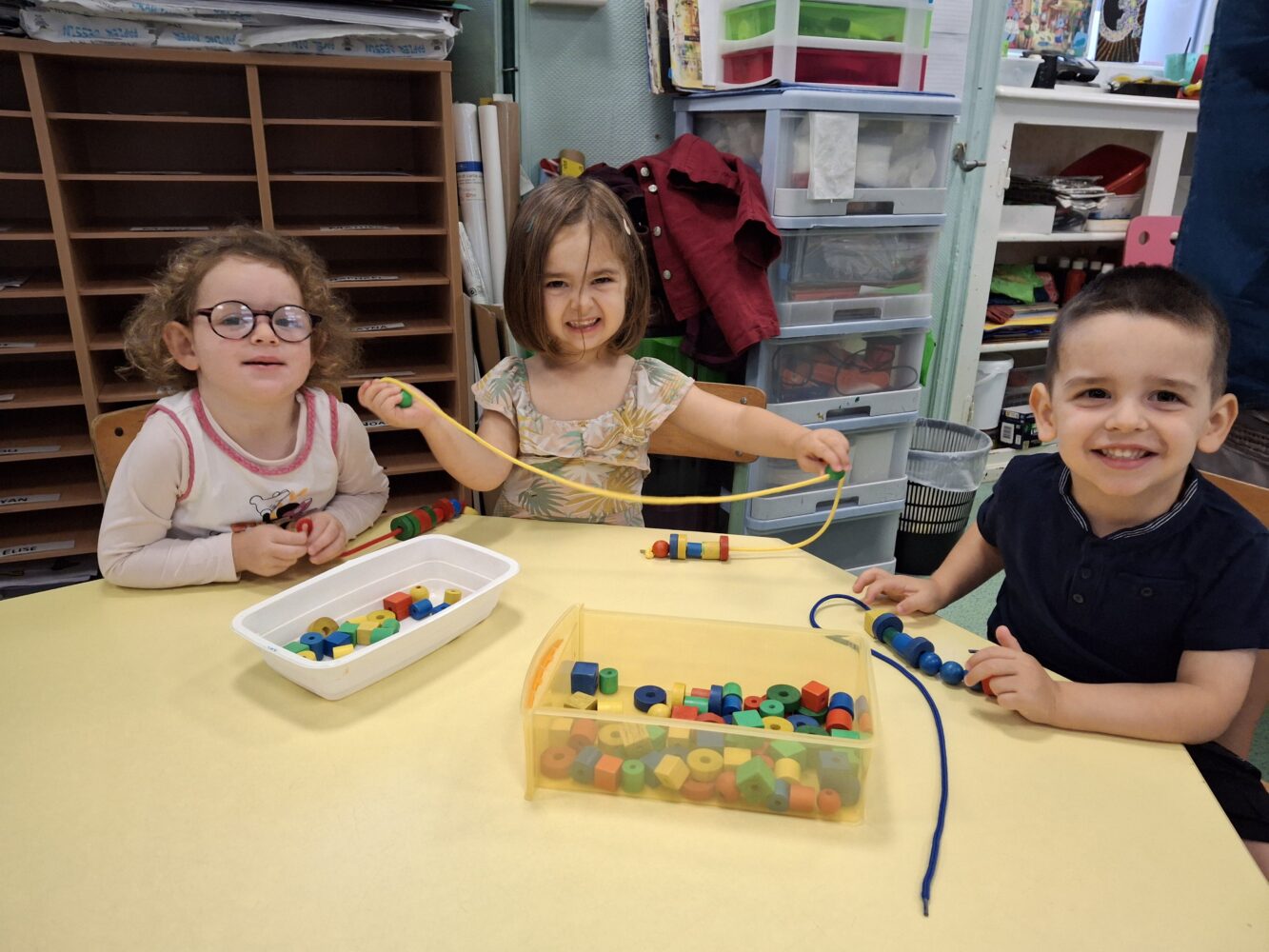 La découverte des coins jeux (les poupées, la cuisine, le garage, les cubes, les Kapla, la bibliothèque…) et les activités se mettent en place !