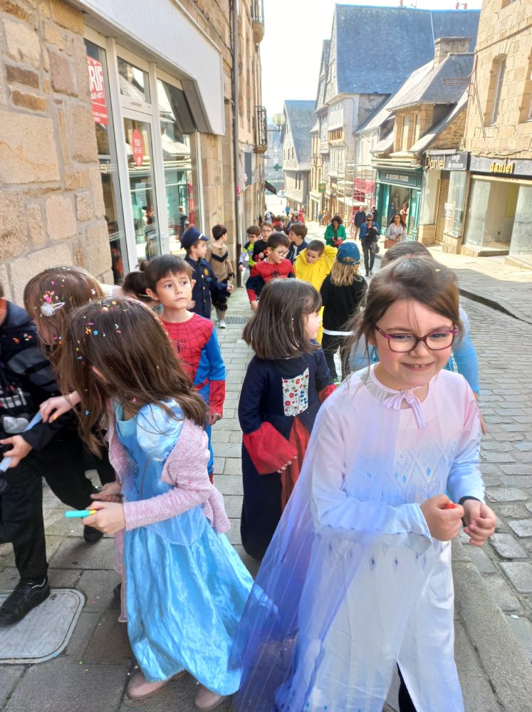 Vendredi 25 mars, les élèves du CP au CM1 ont défilé dans les rues de Lannion, sous un très beau soleil ! Que de joie et de rires!
