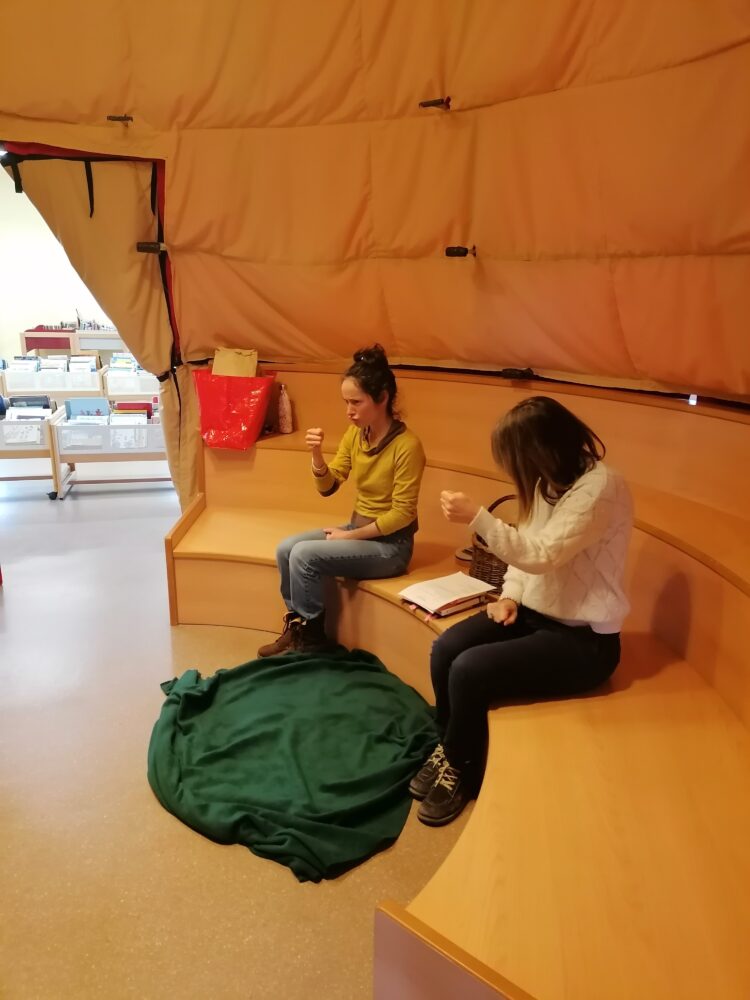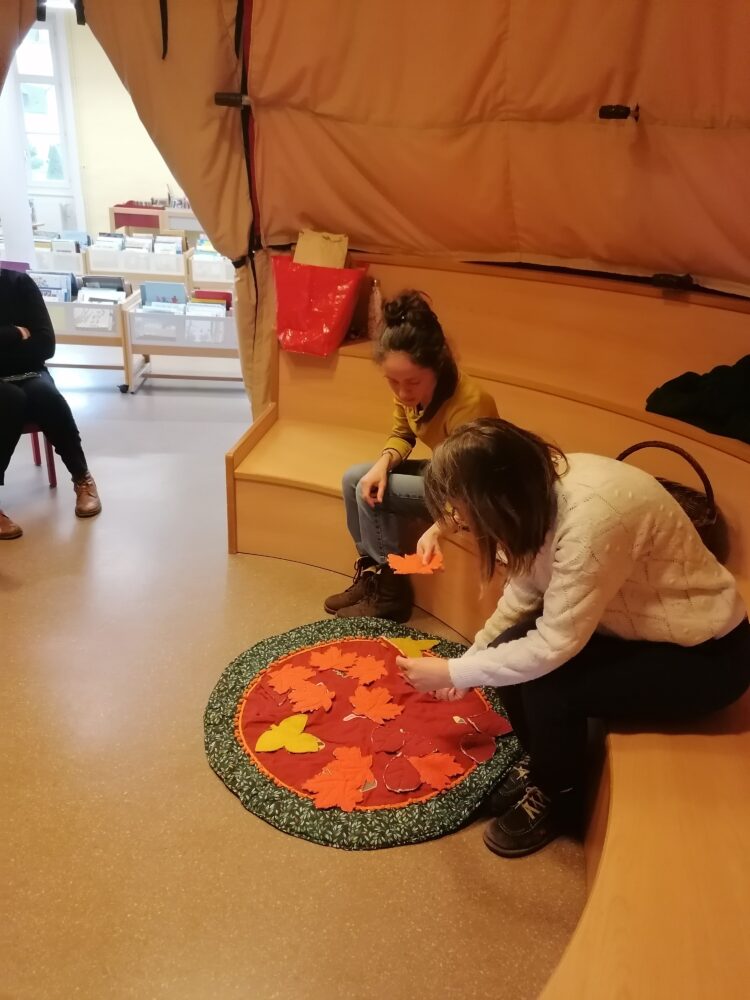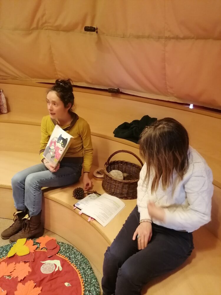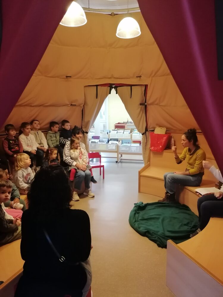 Ce matin, nous sommes allés à la médiathèque .Plusieurs histoires sur le thème de la forêt nous été racontées en breton et en français sous le chapiteau. Il y avait également quelques comptines sur le thème de l’automne. Il fallait être très attentif! Nous avons terminé notre sortie par un petit moment dans la salle de lecture.